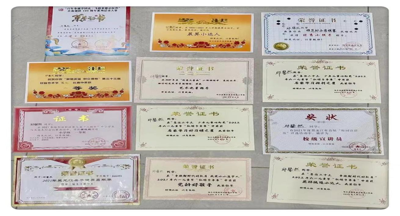 在成長過程中,面對學(xué)習(xí),她不斷挑戰(zhàn)自我,勇于創(chuàng)新,努力去探索新領(lǐng)域,收獲新知識。邱馨然不僅熱愛學(xué)習(xí),而且注重興趣的發(fā)展,先后獲得中國歌劇舞劇院頒發(fā)的全國社會藝術(shù)水平考級朗誦九級,中國舞蹈家協(xié)會頒發(fā)中國舞九級,中國音樂學(xué)院頒發(fā)古箏二級,文化和旅游部發(fā)展中心頒發(fā)硬筆書法四級,中國文化信息協(xié)會頒發(fā)“文明與藝術(shù)”少年英才藝術(shù)全國總展演獨舞一級等11個國家級獎項和30多個省級、市級、區(qū)級、校級獎項。