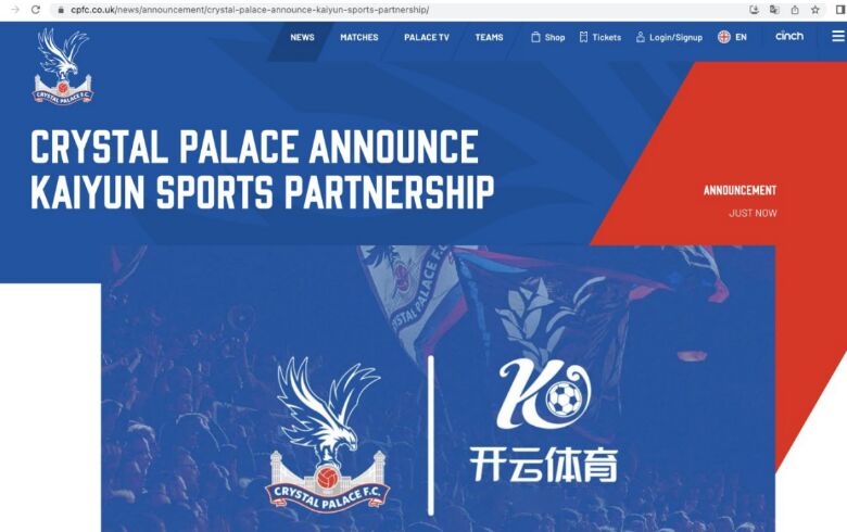 榮耀登場(chǎng)!開云體育成為水晶宮俱樂部官方袖標(biāo)贊助商