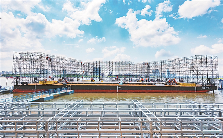 建設中的江上大舞臺。圖片由哈爾濱冰雪大世界股份有限公司提供