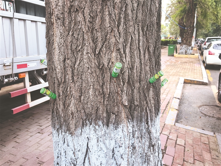 為了治理這些惱人的飛絮,哈市各區(qū)園林部門會對主城區(qū)一些點位的楊樹和柳樹進行飛絮防治。工作人員在樹干上打孔,然后將主要成分為赤霉酸的藥劑輸入樹體內(nèi),雌性楊樹和柳樹花芽的形成就會受到抑制,從而避免飛絮產(chǎn)生,抑制明年產(chǎn)生飛絮。哈市飛絮嚴(yán)重的區(qū)域主要集中在道里、道外、南崗和香坊等老城區(qū)。
