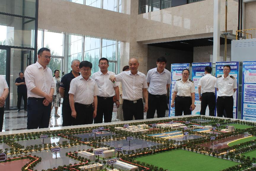 尹承云向考察組一行講解沙盤(pán),介紹綜保區(qū)建設(shè)運(yùn)營(yíng)情況。