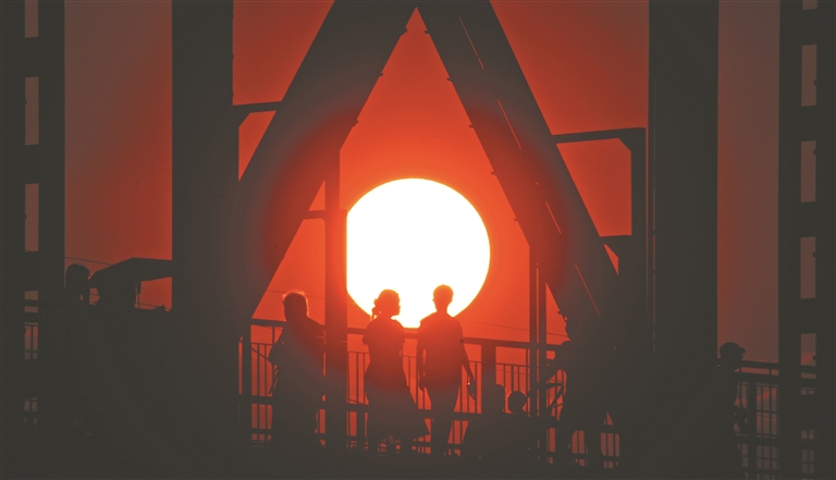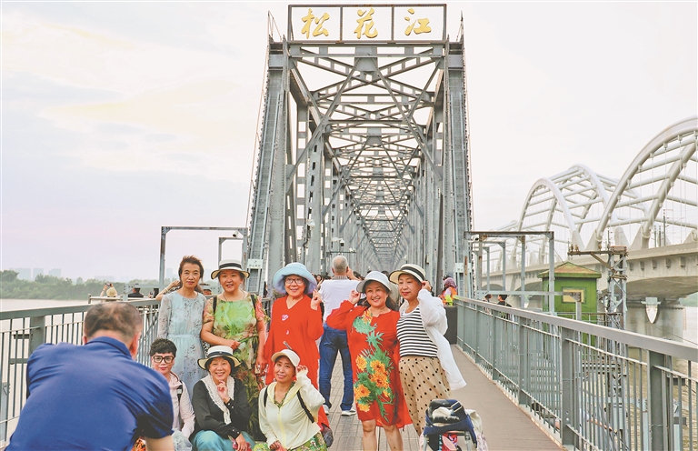 雖然入伏了,但哈爾濱市百年老橋?yàn)I洲鐵路橋上江風(fēng)習(xí)習(xí)、清爽宜人。無論白天還是晚上,都有市民和來自天南海北的游客來此打卡拍照、觀賞美景、沐浴清涼。