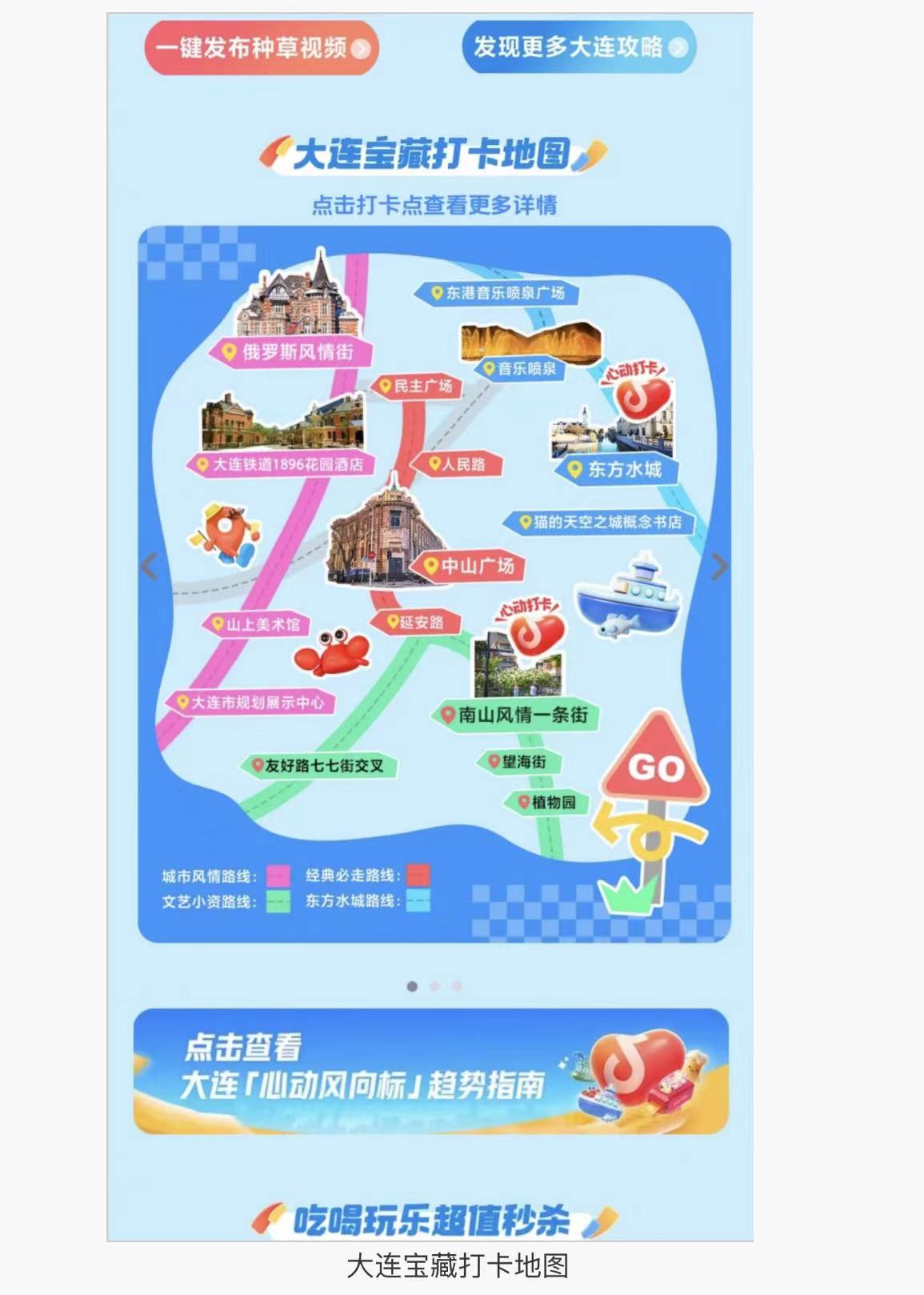線上推廣方面,大連市文化和旅游局與抖音生活服務(wù)共同搭建“心動(dòng)大連”話題頁與“活動(dòng)主會(huì)場”頁面,聚合達(dá)人、用戶、媒體的多樣化內(nèi)容以及本地精選文旅商家,集中推廣大連文旅資源和特色消費(fèi)場景。費(fèi)啟鳴、婁藝瀟、喜劇人大鎖等多位大連籍明星藝人,受邀作為“心動(dòng)大連推薦官”為大連文旅打Call?;顒?dòng)將發(fā)起“心動(dòng)直播周”促消費(fèi)專場直播,設(shè)定周播主題,宣傳城市吃喝玩樂特色內(nèi)容。活動(dòng)還將結(jié)合大連文旅特色以及中秋節(jié)點(diǎn),發(fā)起“海邊的大連有多浪漫”“中秋來大連實(shí)現(xiàn)海鮮自由”等熱門話題造勢。(抖音)