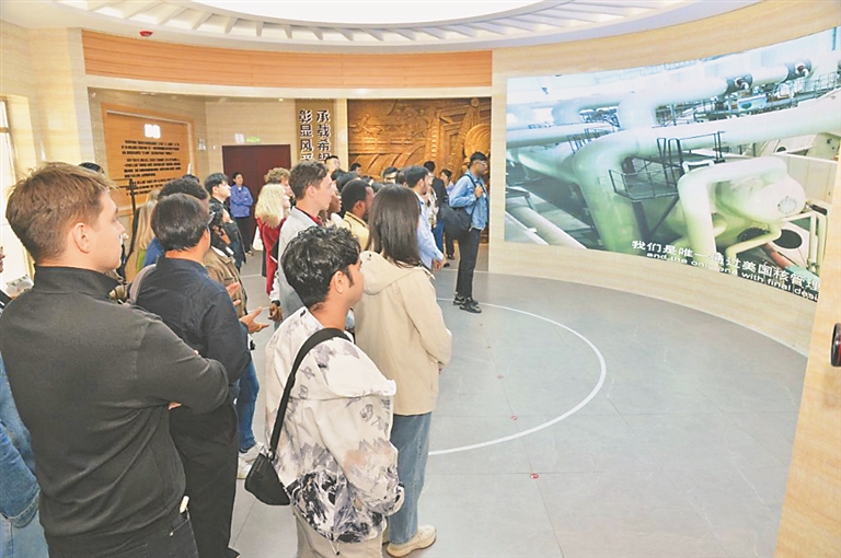 在哈爾濱汽輪機(jī)廠有限責(zé)任公司,留學(xué)生們深入車間一線,近距離觀察了汽輪機(jī)從原材料加工到成品組裝的全過程。