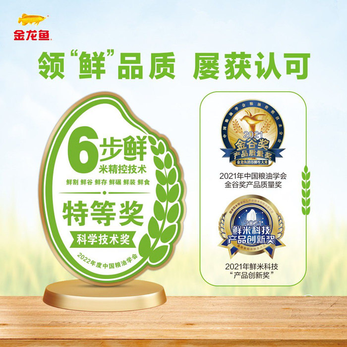 這不是金龍魚6步鮮大米第一次獲得金獎殊榮。6步鮮大米采用的稻谷“6步鮮米精控技術(shù)”創(chuàng)新體系開發(fā)及產(chǎn)業(yè)化,在2022年獲得了中國糧油學(xué)會科學(xué)技術(shù)獎特等獎。這也是中國糧油學(xué)會科學(xué)技術(shù)獎當(dāng)年惟一一個“特等獎”項,含金量可見一斑。