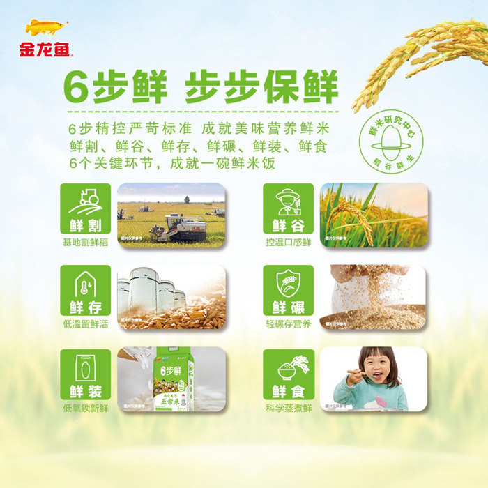 金龍魚的成績,離不開其長期以來對“新質(zhì)生產(chǎn)力”的深耕,金龍魚采用的稻谷6步鮮米精控技術(shù),便是科技創(chuàng)新在農(nóng)業(yè)領(lǐng)域的生動體現(xiàn)。在“鮮割、鮮谷、鮮存、鮮碾、鮮裝、鮮食”的各關(guān)鍵環(huán)節(jié)上,實現(xiàn)了田間到餐桌的全鏈路保鮮,也為稻谷的基因檢測、降低水分、科學(xué)存儲、適度加工、即碾即裝等重要階段提供了嚴(yán)苛保障。