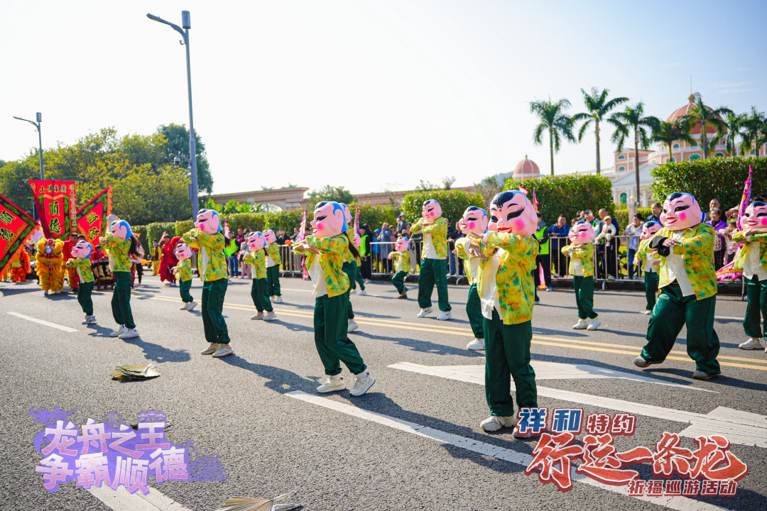 解鎖龍文化,體驗(yàn)新玩法;打造新民俗,巡游好歡樂?!靶羞\(yùn)一條龍”祈福巡游活動(dòng)是順德全新打造的龍舟文化新民俗,現(xiàn)已成功舉辦兩屆。巡游以“拜龍母”“龍眼點(diǎn)睛”等民俗儀式為核心,凝練“行龍運(yùn),接龍?!钡脑⒁猓屖忻裼慰徒嚯x感受民俗活動(dòng)的獨(dú)特魅力。