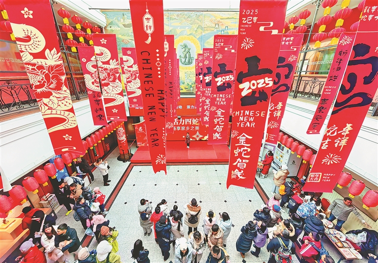 1月29日,大年初一,哈爾濱太陽(yáng)島雪博會(huì)園區(qū),游人如織。孩子們?cè)诩议L(zhǎng)的帶領(lǐng)下,坐雪圈、騎冰上自行車(chē),玩冰戲雪,歡樂(lè)融融。省博物館展廳內(nèi),懸掛了紅燈籠、紅條幅,許多市民、游客在參觀學(xué)習(xí),打卡拍照,體驗(yàn)傳統(tǒng)民俗。