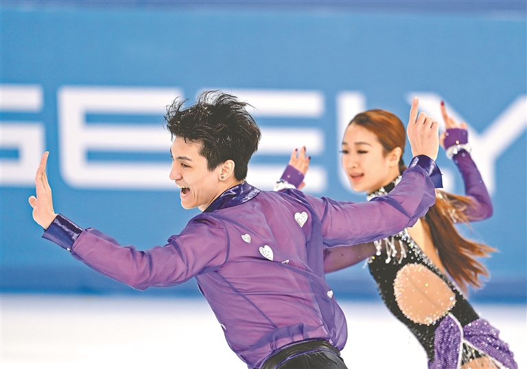 11日下午,在第九屆亞冬會花樣滑冰冰上舞蹈韻律舞比賽中,首次參加亞冬會的00后中國組合任俊霏/邢珈寧以64.29分暫列第二。任俊霏/邢珈寧以放克組合地火風樂隊的作品混編為伴奏,頗有復古迪斯科舞風,兩人配合嫻熟,曲舞合一,優(yōu)美的舞姿和精妙的配合引來主場觀眾的陣陣掌聲。
