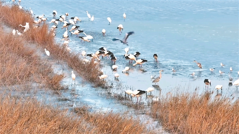 不僅東方白鸛,還有越來越多的珍稀鳥類和野生動物在此安家落戶,生物多樣性日益豐富。張瑩攝