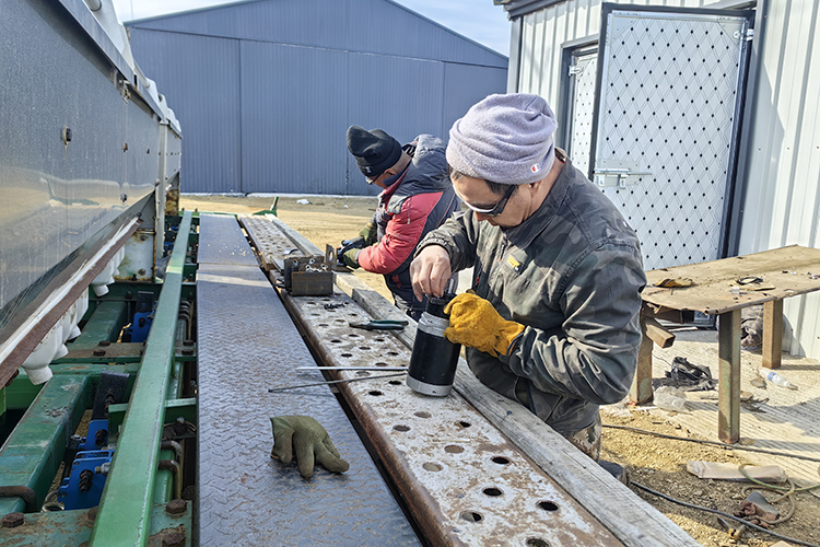 在第二管理區(qū),施肥機(jī)的改裝成效顯著。有機(jī)戶們?cè)谵r(nóng)業(yè)技術(shù)人員的悉心指導(dǎo)下,有條不紊地對(duì)施肥機(jī)進(jìn)行改裝。