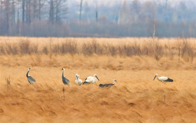 本報(bào)訊(陳辰 記者 賈紅路)日前,攝影愛好者在伊春市豐林縣新青國家濕地公園捕捉到令人興奮的一幕:三種“鳥中國寶”——國家一級重點(diǎn)保護(hù)野生動(dòng)物白頭鶴、白枕鶴和東方白鸛同框亮相,上演春日里的生態(tài)“大片”。