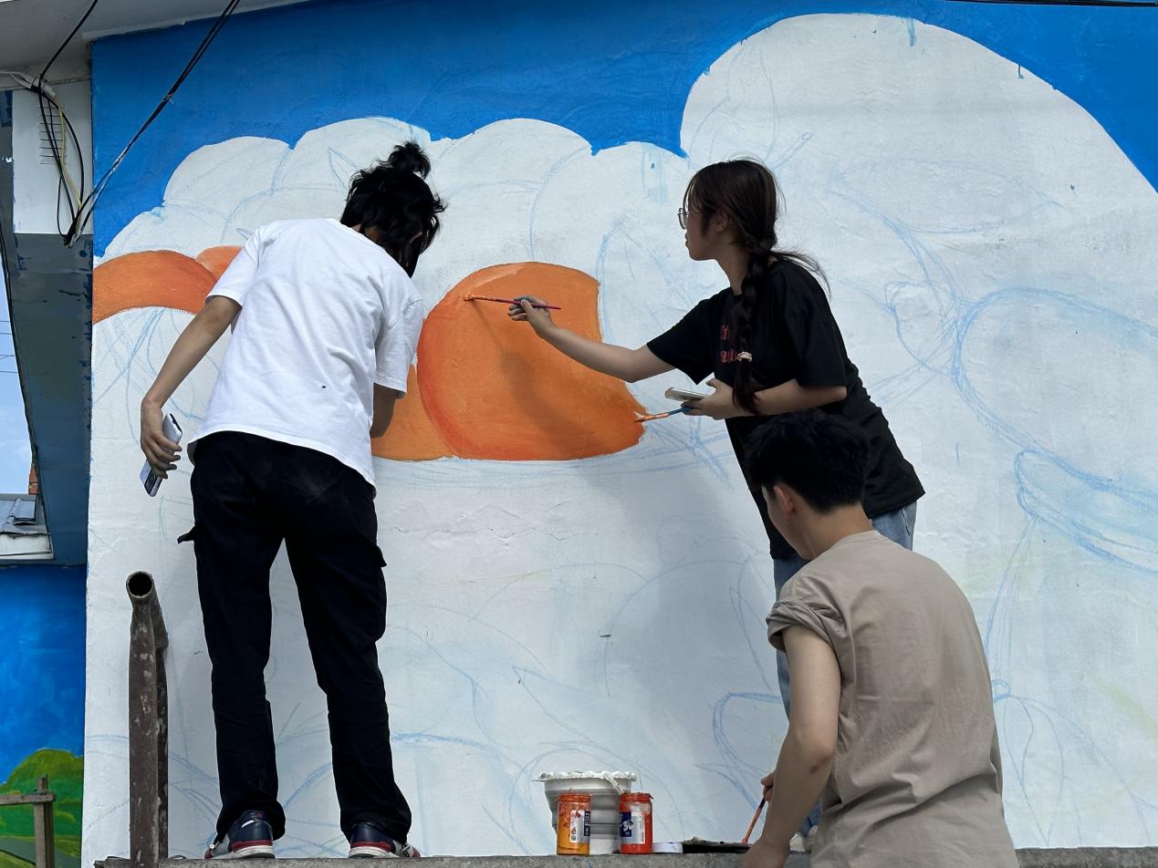 活動(dòng)現(xiàn)場(chǎng),20多名聽(tīng)障學(xué)子和志愿者在指導(dǎo)老師的帶領(lǐng)下,分工協(xié)作,迅速投入到彩繪工作中。他們用畫筆在墻體上細(xì)致地勾勒出鄉(xiāng)村振興的美好愿景,用心描繪出對(duì)未來(lái)的無(wú)限憧憬。那一筆一畫中,飽含著他們對(duì)生活的熱愛(ài)、對(duì)鄉(xiāng)村的深情。