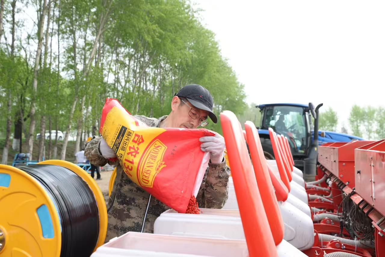 在北林區(qū)大豆大面積單產(chǎn)提升示范區(qū),工作人員熟練地操作著設(shè)備,金黃的大豆種子源源不斷地進(jìn)入拌種機(jī),經(jīng)過與精心調(diào)配的種衣劑充分混合,一顆顆種子都披上了一層均勻的“防護(hù)衣”,為大豆高產(chǎn)穩(wěn)產(chǎn)和黑土地保護(hù)注入新動(dòng)能。