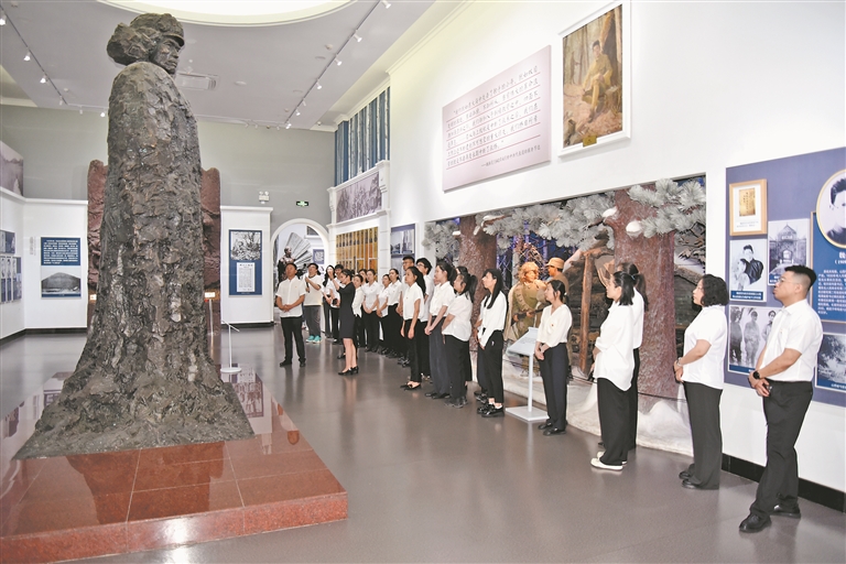 紀(jì)念館內(nèi),講解員深情朗誦《盧溝曉月》,將人們的思緒帶回“盧溝橋事變”那個(gè)山河破碎、狼煙四起的夜晚。隨后,大家跟隨講解員參觀了“黑土英魂陳列”,在一件件珍貴文物與歷史畫卷中重溫崢嶸歲月,感悟英烈精神。