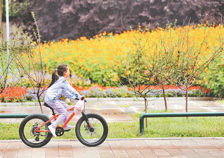 3日,哈爾濱市道里區(qū)陽明灘大道附近,行人從“口袋公園”旁走過。今年,當(dāng)?shù)匦陆硕鄠€“口袋公園”,占地面積數(shù)萬平方米。公園里,樹木生長茂盛,鮮花爭奇斗艷,小道從園中穿過,道旁設(shè)有座椅、健身器材等。許多附近居民到這里休閑、賞景。