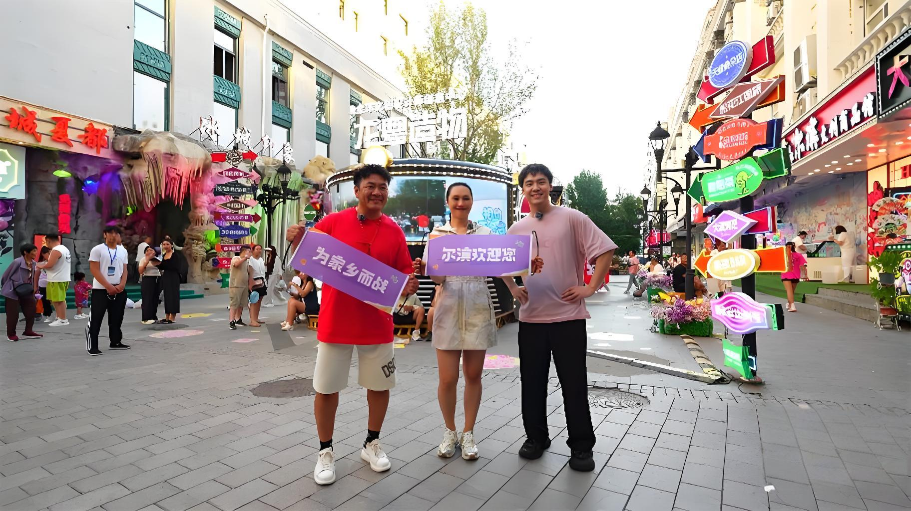 8月6日的哈爾濱中央大街,索契冬奧會(huì)速滑冠軍張虹邊走邊介紹紅腸、乳酪、黑豆?jié){等東北特產(chǎn),東北文旅達(dá)人“左右哥”和游戲解說(shuō)宇航現(xiàn)場(chǎng)介紹了馬迭爾雪糕的N種吃法……這些看似不相關(guān)的元素,因?yàn)橐粋€(gè)共同的主題"為家鄉(xiāng)而戰(zhàn)"而產(chǎn)生了奇妙的化學(xué)反應(yīng)。