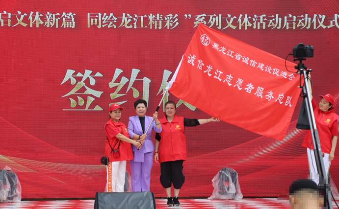 在誠信龍江志愿服務(wù)總隊成立儀式上,張波會長莊重地將象征“奉獻(xiàn)、友愛、互助、進(jìn)步”精神的“誠信龍江志愿者服務(wù)總隊”隊旗,授予首任隊長。這面旗幟的傳遞,標(biāo)志著一支服務(wù)社會、傳播誠信理念的專業(yè)志愿隊伍正式啟航。未來,志愿者們將深度融入系列文體活動的組織、服務(wù)與宣傳,以行動詮釋志愿精神,用熱忱擦亮“誠信龍江”品牌,為活動成功舉辦和誠信文化播撒注入強(qiáng)勁的志愿力量。