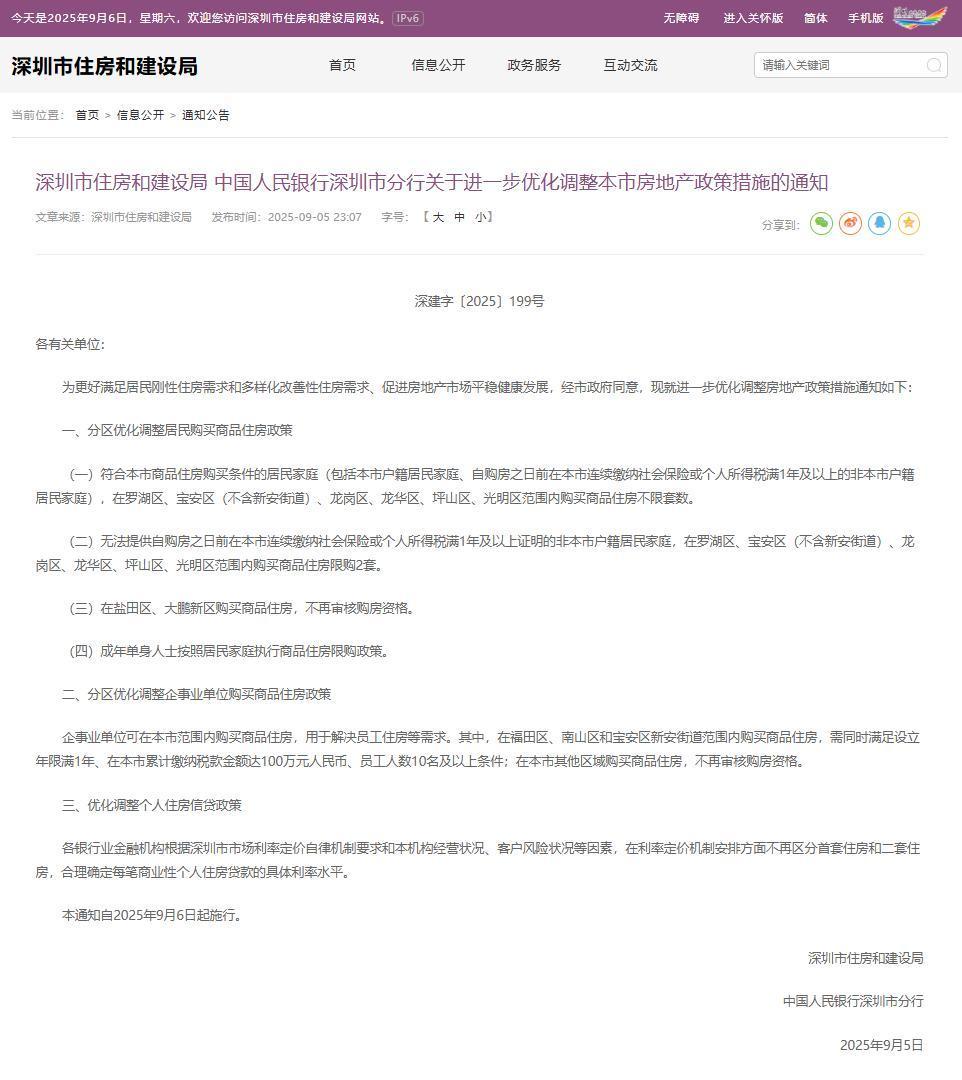 為進(jìn)一步滿(mǎn)足居民住房需求,促進(jìn)房地產(chǎn)市場(chǎng)平穩(wěn)健康發(fā)展,深圳市自2025年9月6日起優(yōu)化調(diào)整房地產(chǎn)政策,鹽田區(qū)、大鵬新區(qū)購(gòu)買(mǎi)商品住房不再審核購(gòu)房資格,其他部分區(qū)域也大幅放寬限購(gòu)條件。