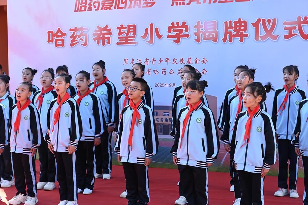隨后,領(lǐng)導(dǎo)嘉賓為哈爾濱市香坊區(qū)幸福鎮(zhèn)哈藥希望小學(xué)揭牌,標(biāo)志著這所學(xué)校將以嶄新面貌,承載更多夢想與希望,開啟新的篇章。