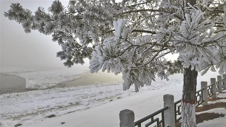 江上跑冰排 江岸現(xiàn)霧凇