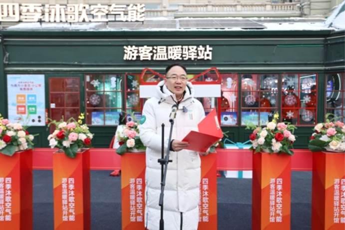 四季沐歌集團(tuán)總裁李駿在儀式講話(huà)中指出:“科技助力美好生活”絕非一句空洞口號(hào),而是集團(tuán)深耕綠色發(fā)展、踐行社會(huì)責(zé)任的核心內(nèi)核與行動(dòng)綱領(lǐng),依托前沿低碳技術(shù)打造的“溫暖驛站”應(yīng)用場(chǎng)景,以綠色賦能城市的生動(dòng)實(shí)踐贏得了廣大游客的深度認(rèn)可;面向未來(lái),驛站將完成從便民服務(wù)場(chǎng)景到低碳科普實(shí)踐基地的價(jià)值進(jìn)階,這既是企業(yè)低碳理念的具象化延伸,更是以場(chǎng)景為媒、以實(shí)踐為橋播撒綠色發(fā)展種子的責(zé)任踐行,四季沐歌始終堅(jiān)信冰雪經(jīng)濟(jì)的高質(zhì)量發(fā)展離不開(kāi)綠色低碳的底色,集團(tuán)將持續(xù)以技術(shù)創(chuàng)新助力哈爾濱冰雪經(jīng)濟(jì)與綠色發(fā)展深度融合,讓人與自然和諧共生的理念在這座冰雪之城中落地生根,向五湖四海傳遞延伸。