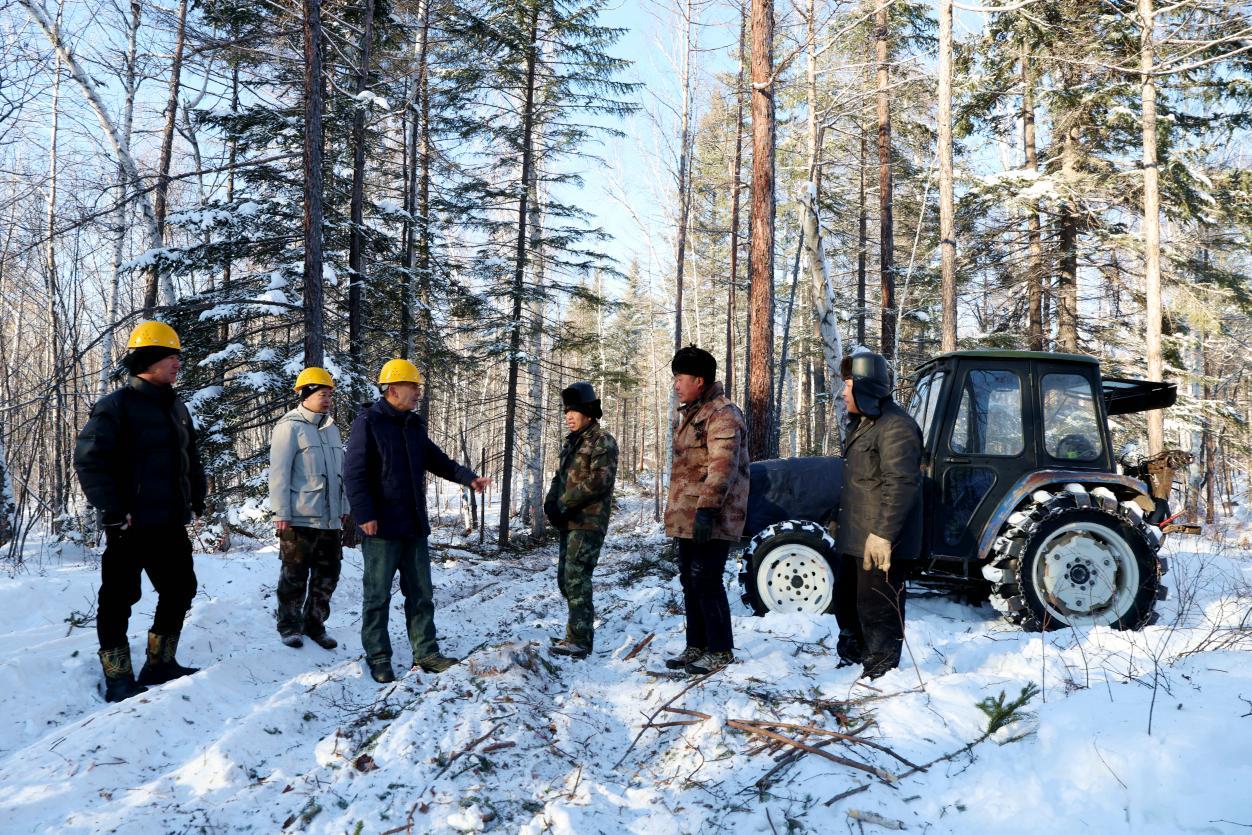 阿木爾林業(yè)局生態(tài)修復(fù)管理科工作人員深入到作業(yè)場地,講解安全生產(chǎn)相關(guān)注意事項(王力 攝)