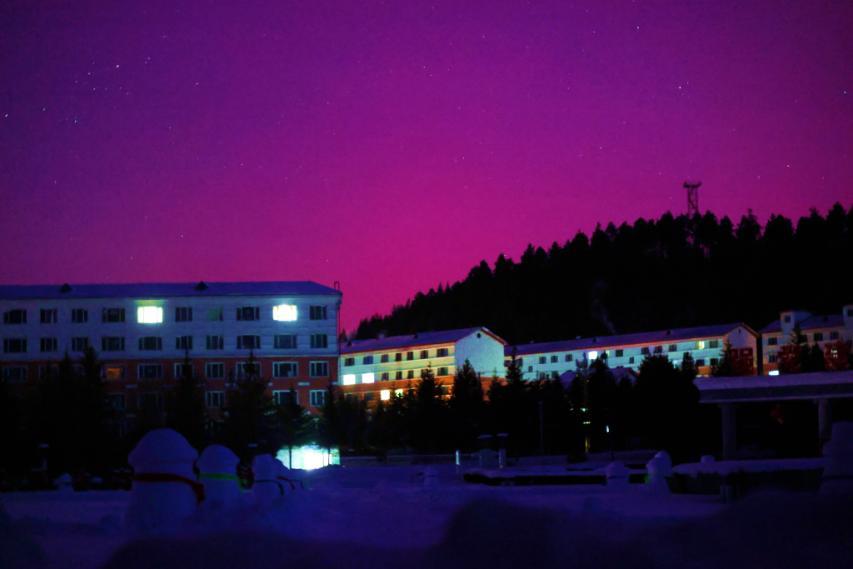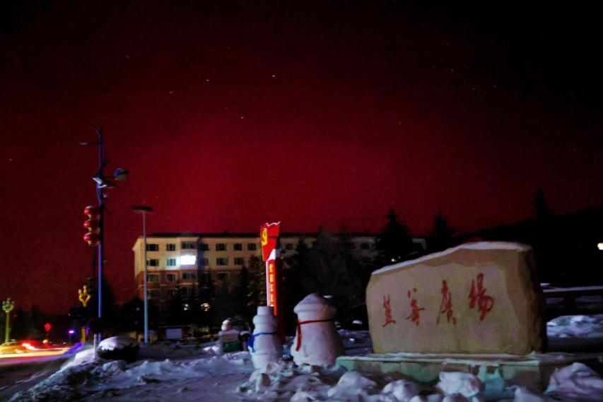 當日清晨5時30分,阿木爾林業(yè)局北方天空悄然浮現(xiàn)橘紅色北極光,澄澈夜空中,流動的極光如彩綢漫舞,搭配漫天璀璨星河、靜謐連綿群山,還有城鎮(zhèn)里惺忪的燈光,共同勾勒出一幅夢幻綺麗的北國畫卷,裸眼即可清晰觀賞。當?shù)鼐用裉婆康谝粫r間記錄下這一美景,難掩興奮:“往年總盼著夏至能拍到北極光,沒想到冬季也能邂逅這般盛景,親身感受宇宙的壯麗浩瀚,太幸運了!”