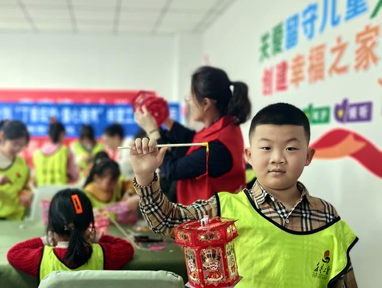 肇州鎮(zhèn)童心港灣組織兒童制作喜慶燈籠