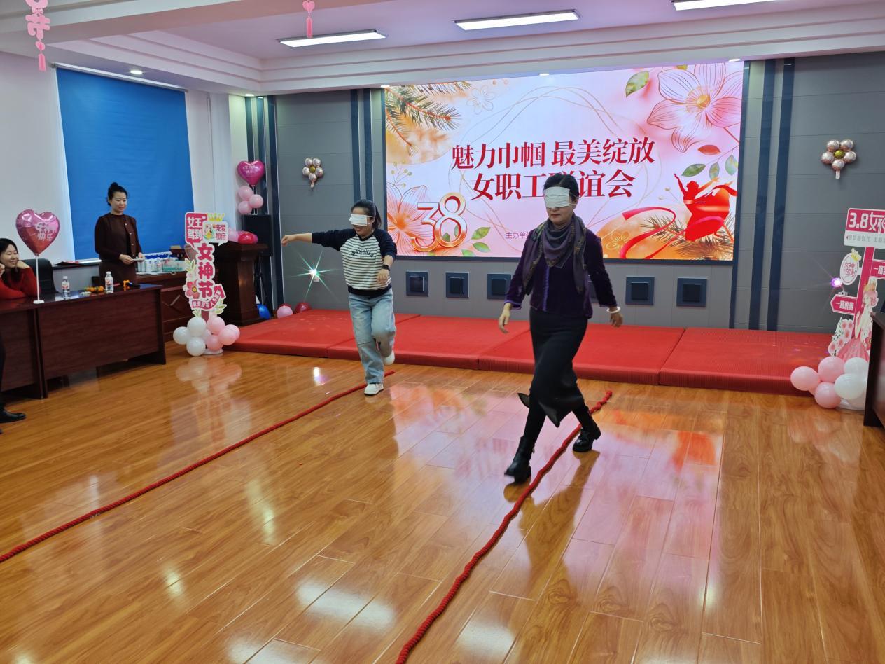 互動游戲環(huán)節(jié)同樣妙趣橫生,“桃花朵朵開”“漏框接氣球”“蒙眼走繩子”“蒙眼喝飲料”等趣味項目,讓女職工們暫時卸下工作壓力,在比拼中增進情誼,在歡聲笑語中放松身心。現(xiàn)場加油聲、喝彩聲此起彼伏,持續(xù)將活動氛圍推向高潮。