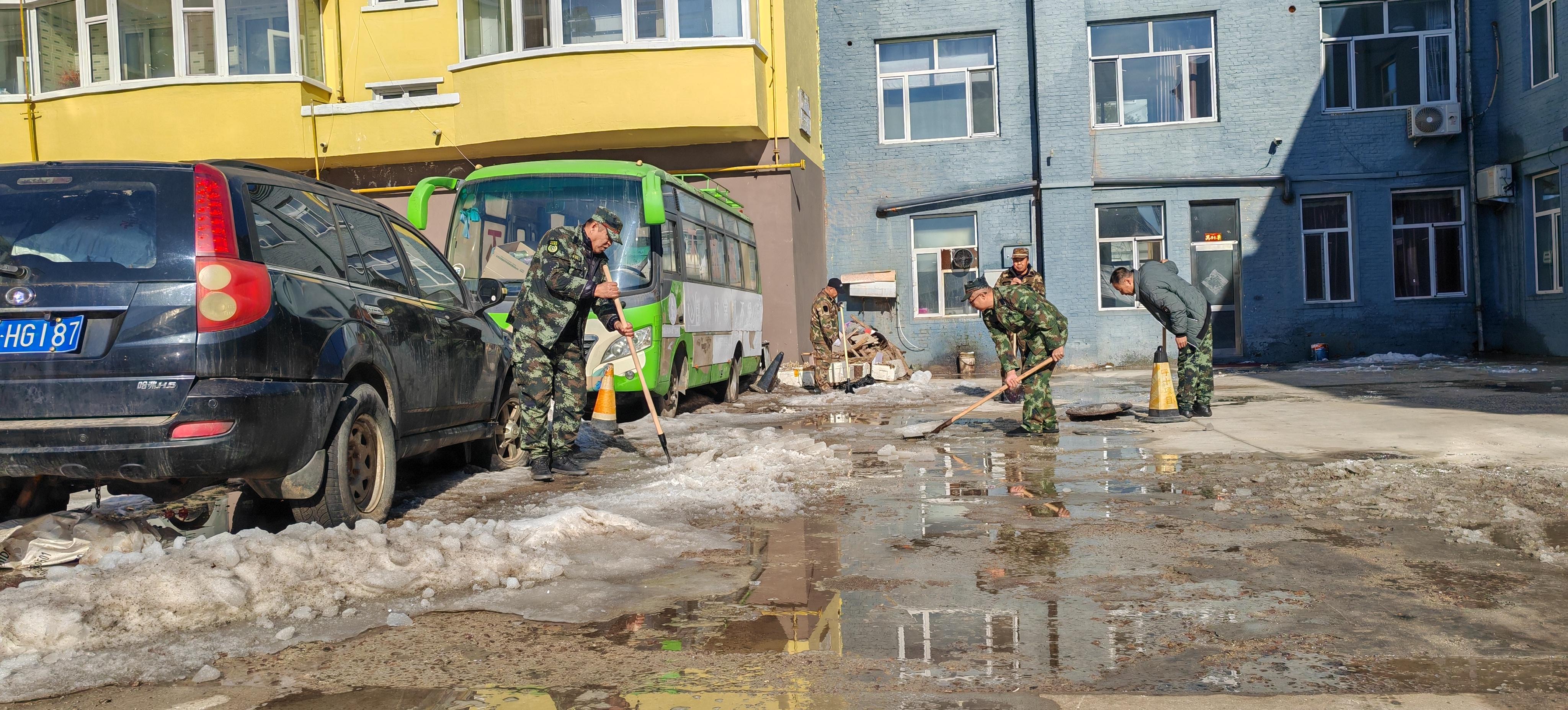 大家主動擔當,手持鐵鍬、掃帚等工具,分工協(xié)作、有序作業(yè)。認真鏟除樓前屋后的堅冰,細致清掃樓頂殘雪,不放過一處死角盲區(qū)。盡管春寒尚存,職工們依舊干勁十足,以飽滿的熱情投入到清理工作中。