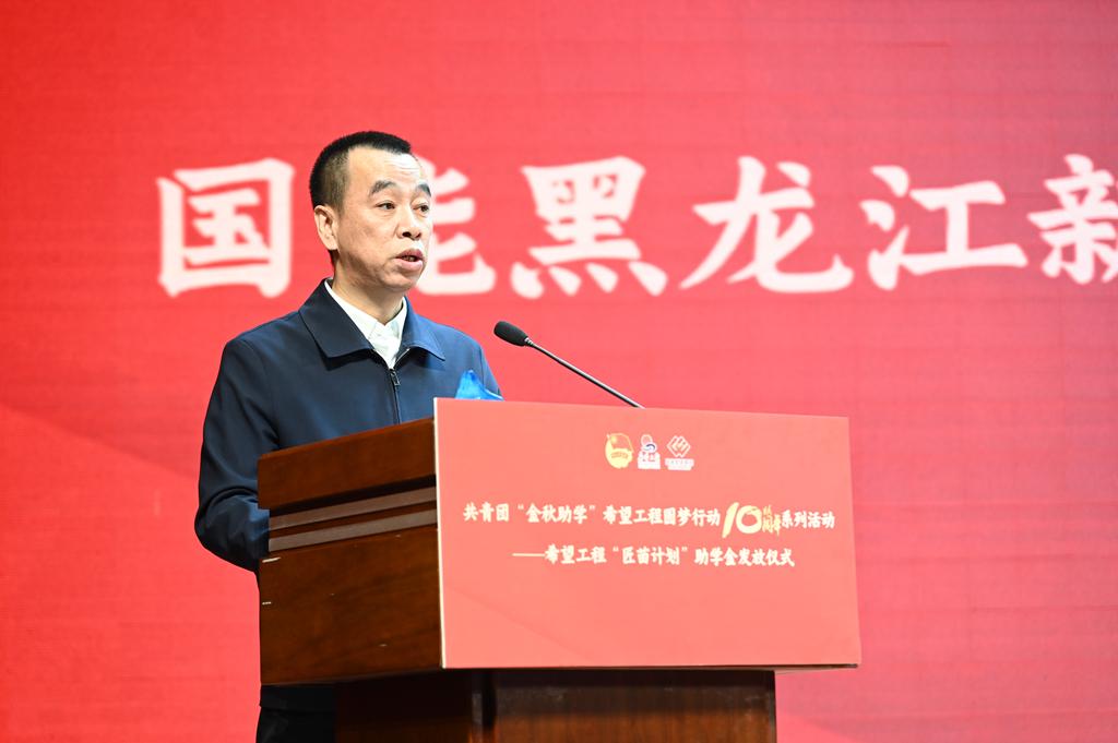 國(guó)能黑龍江新能源有限公司黨委書(shū)記、執(zhí)行董事遲鳳亮發(fā)言。他表示:“履行央企社會(huì)責(zé)任、傳遞社會(huì)溫暖是企業(yè)的初心與擔(dān)當(dāng),未來(lái),國(guó)能黑龍江新能源有限公司將繼續(xù)踐行央企責(zé)任,一如既往地支持希望工程事業(yè),關(guān)注青年成長(zhǎng),與社會(huì)各界一道,共同為龍江全面振興全方位振興貢獻(xiàn)力量?!?/span>